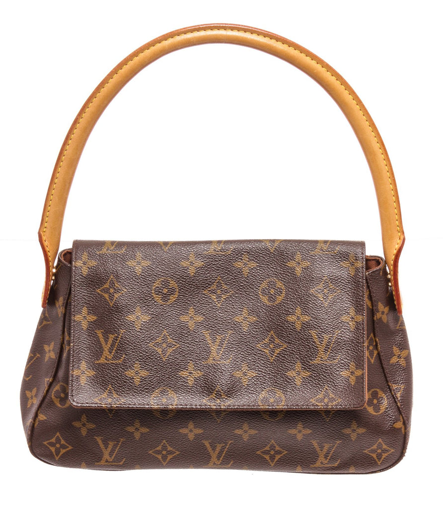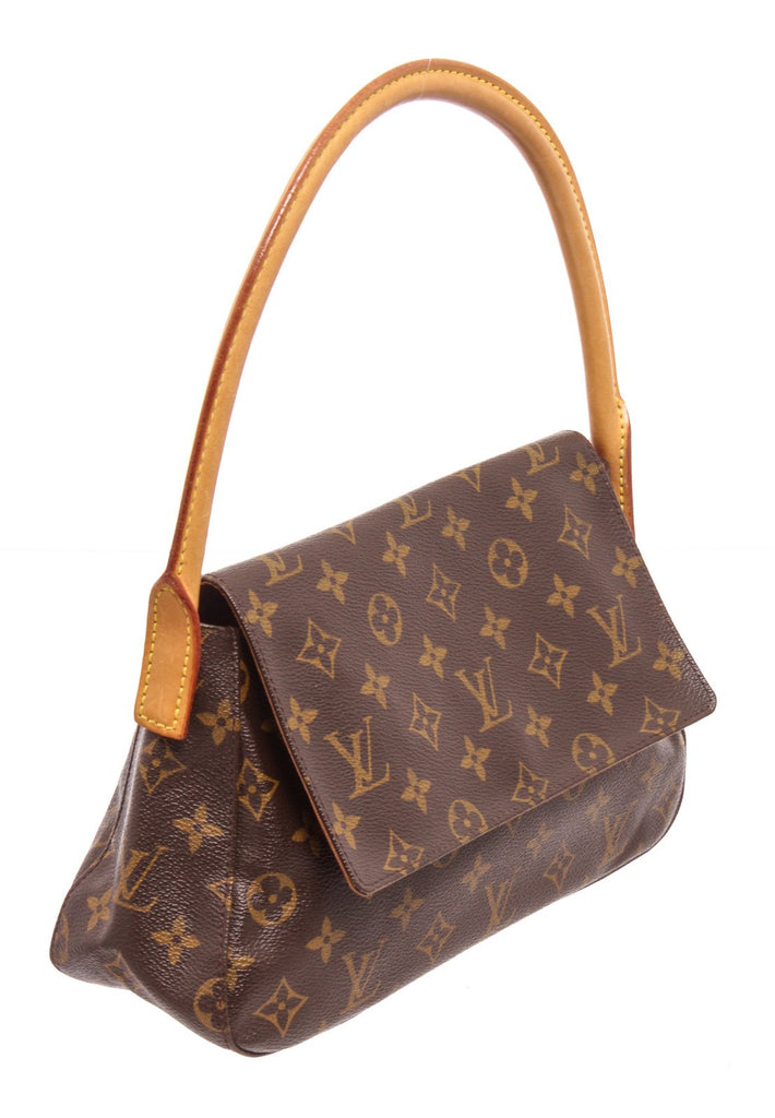 The Louis Vuitton Monogram Canvas Mini Looping bag has a unique and modern structure and is perfect for day or night. It is the smallest member of the Looping family which all have the padded natural leather swiveling arc handle.
